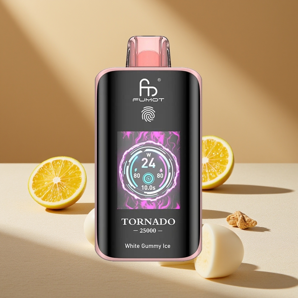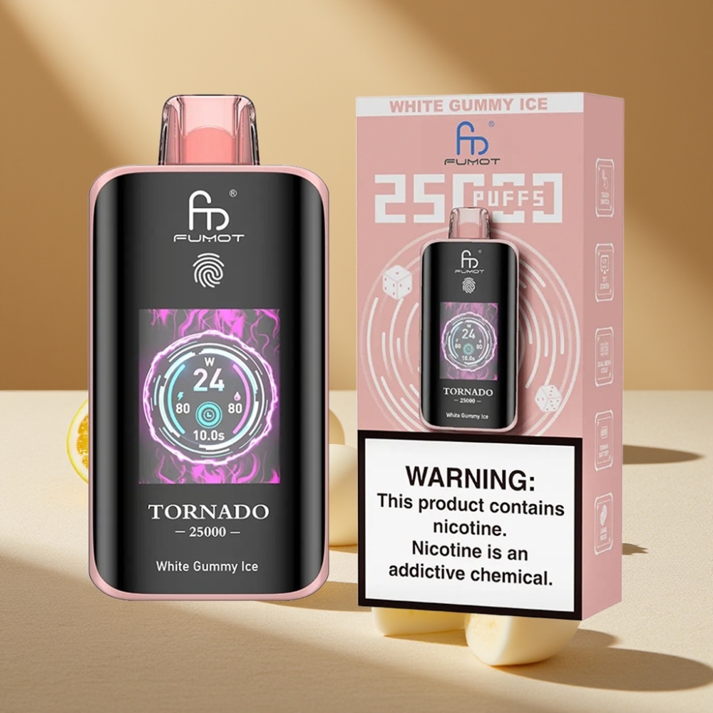 Fumot Tornado 25000 Puffs HD Screen 20ml Disposable Vape White Gummy Ice
