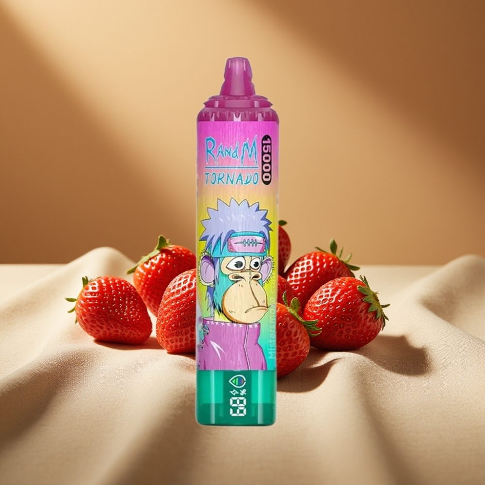 RandM Fumot Tornado 15000 Puffs Disposable Vape – 25ml Mesh Coil, 850mAh, Type-C, LCD, Iced Strawberry