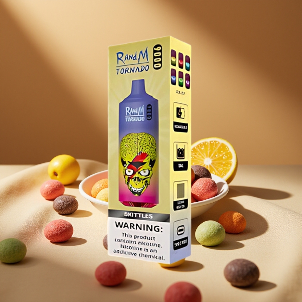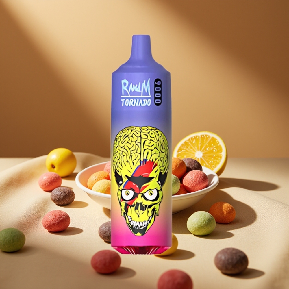 RandM Tornado 9000 Puffs Rechargeable 18mL Mesh Coil RGB Display Skittles