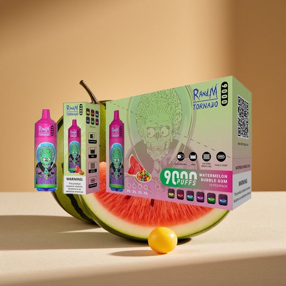 RandM Tornado 9000 Puffs Rechargeable 18mL Mesh Coil RGB Display Watermelon Bubble Gum