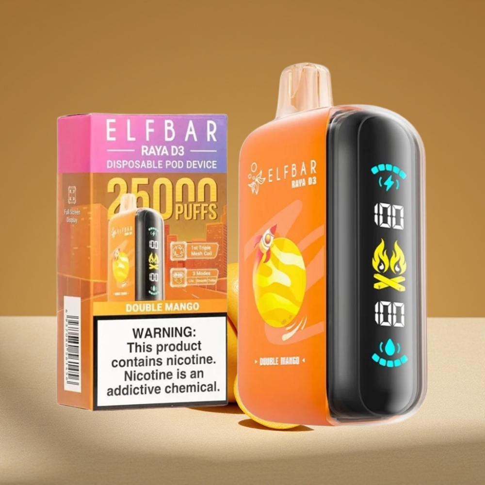 ELF BAR RAYA D3 25000 Puffs 23ml 5% Rechargeable Disposable Vape Double Mango