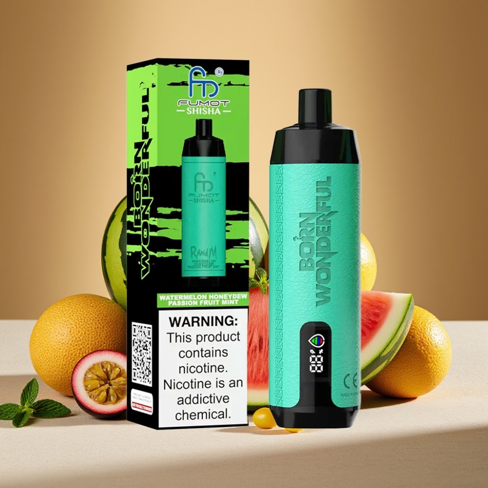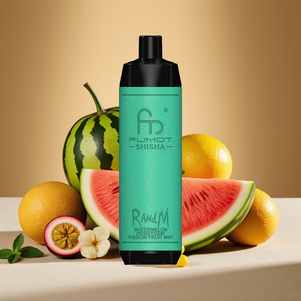RandM Fumot Shisha 10000 Puffs Disposable Vape with LED, 18mL e-Liquid, Type-C Port – Watermelon Honeydew Passion Fruit Mint