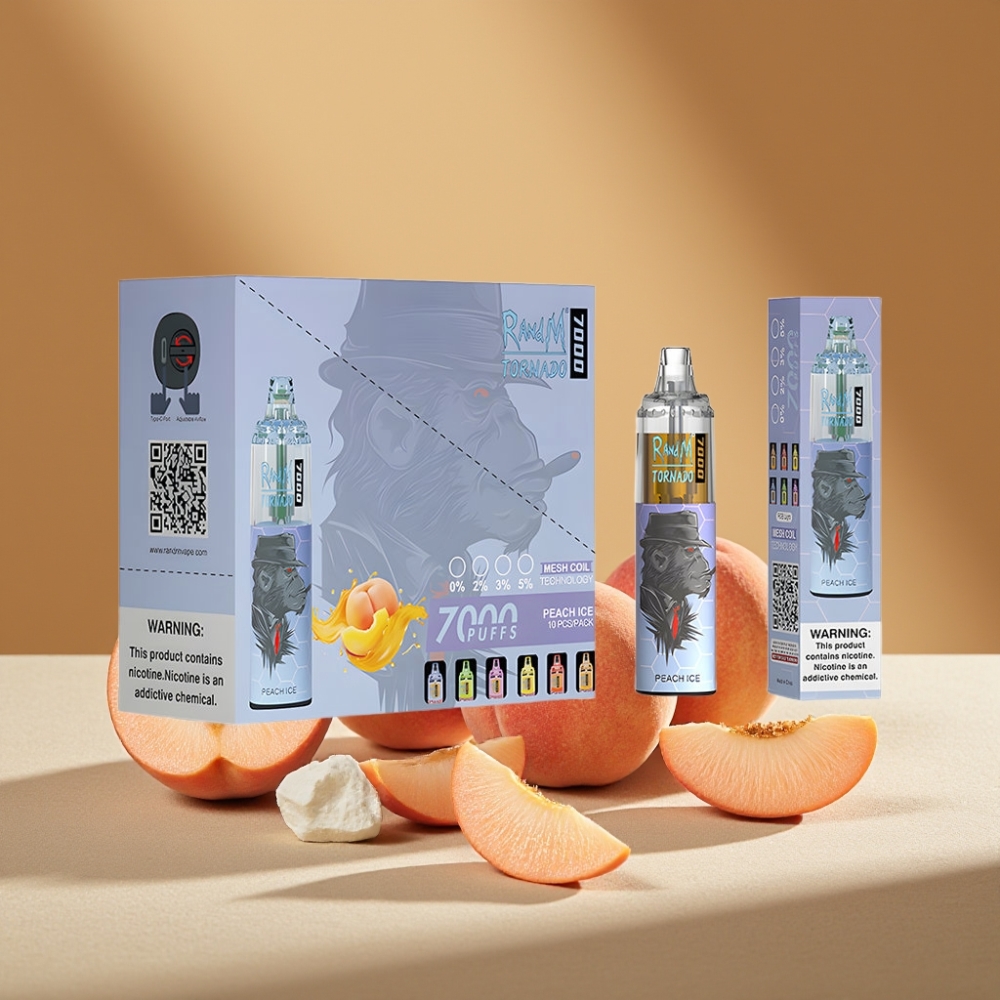 RandM Fumot Tornado 7000 Puffs Mesh Coil Disposable Vape Peach Ice