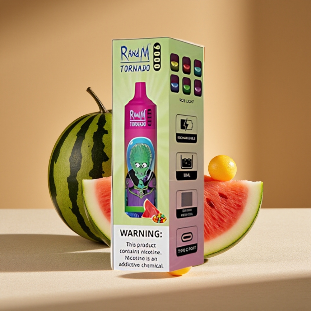 RandM Tornado 9000 Puffs Rechargeable 18mL Mesh Coil RGB Display Watermelon Bubble Gum
