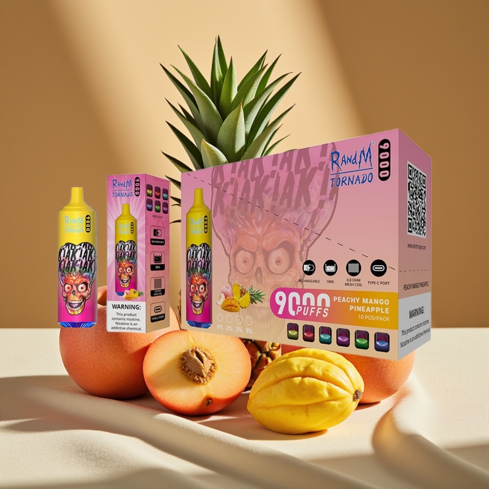 RandM Tornado 9000 Puffs Rechargeable Mesh Coil 18mL RGB Display Peachy Mango Pineapple