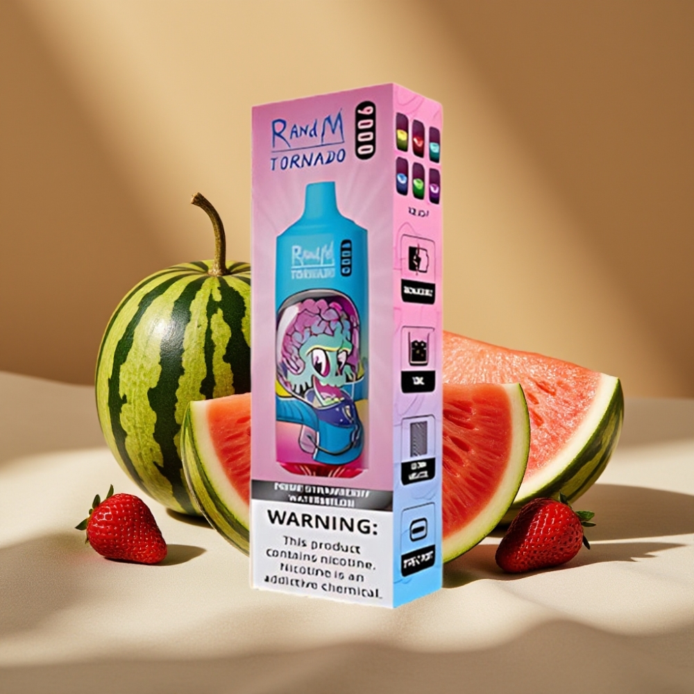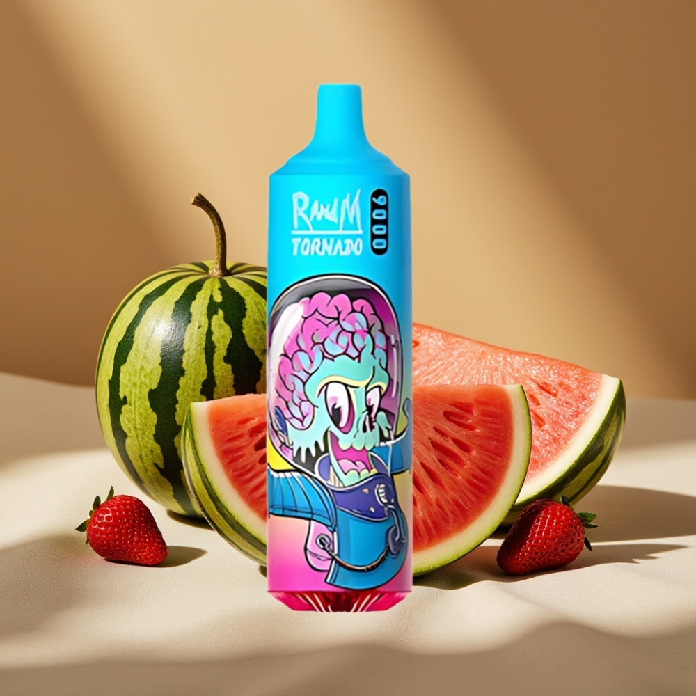 RandM Tornado 9000 Puffs Rechargeable Mesh Coil 18mL RGB Display Prime Strawberry Watermelon