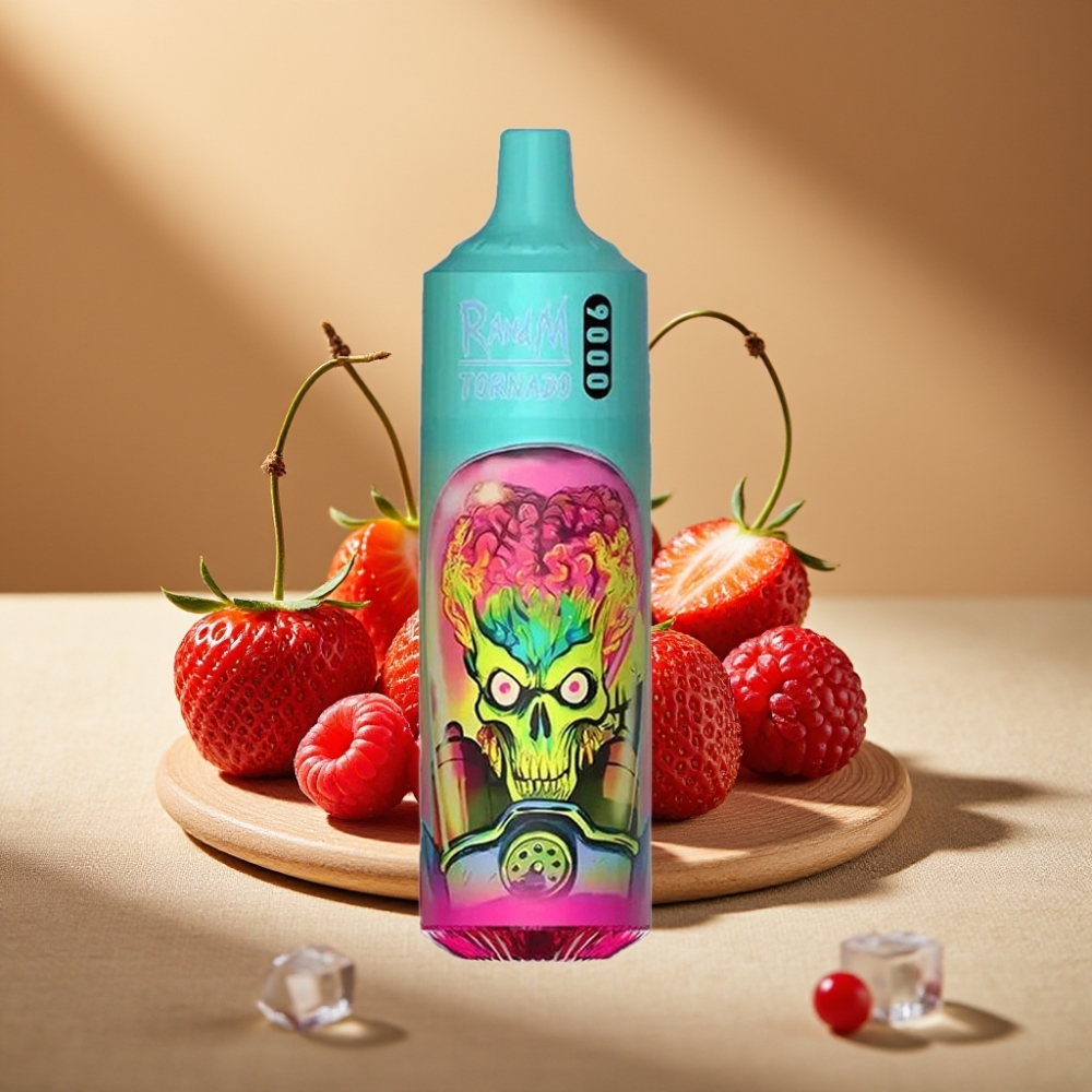 RandM Tornado 9000 Puffs Rechargeable Mesh Coil 18mL RGB Display Strawberry Raspberry Cherry Ice